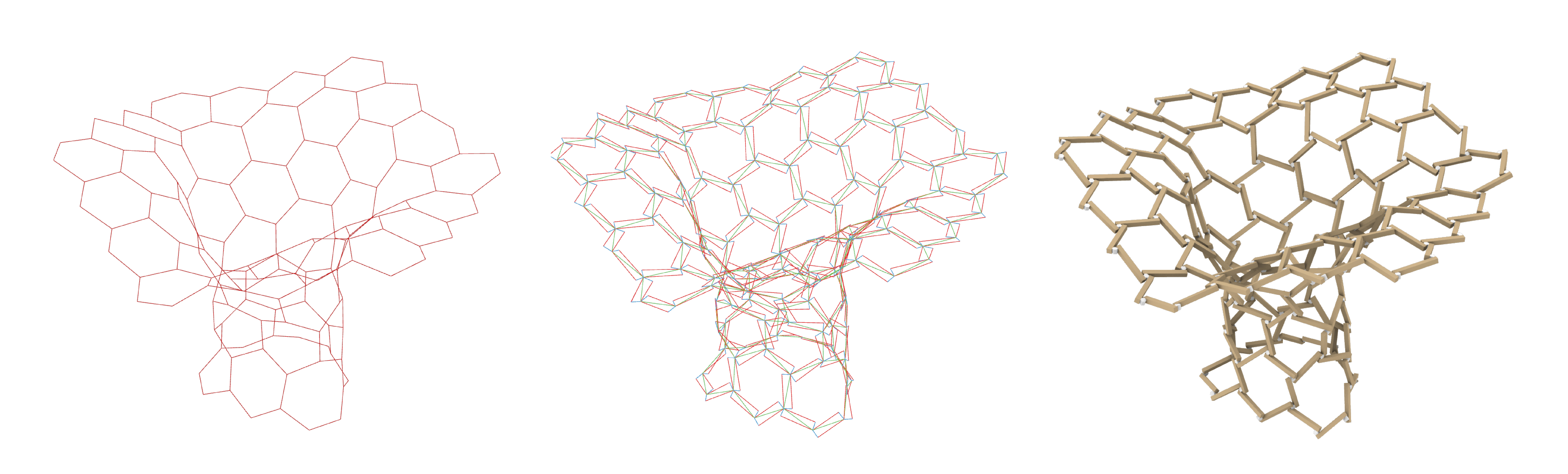 モニュメントは、隈研吾建築都市設計事務所デザインのもと制作しました。移動・組立・解体・保管・再利用が容易で、環境に応じて全体の形状を変形できる、フレキシブルなジョイントシステムを開発し、環境負荷が小さく、自然と共生する、植物や生物のような、これからの建築のあり方を表現しています。(画像提供:隈研吾建築都市設計事務所)