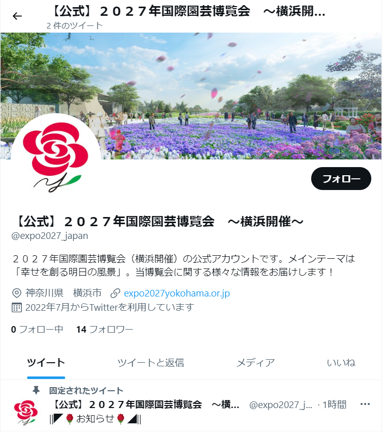 2027年国際園芸博覧会協会のTwitter(ツイッター)を開設しました。