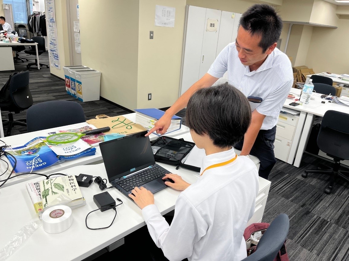 今回、植物部職員の農林水産省訪問に体験実習生も同行し、GREEN×EXPOで使用する在庫管理システムの試用版開発について、デジタル戦略グループの担当官にアドバイスをいただきました。