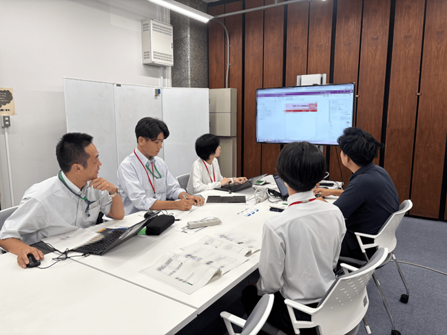 インターンシップに参加いただいている体験実習生に、植物の調達から維持管理までを管理するシステムの開発を体験していただきました。