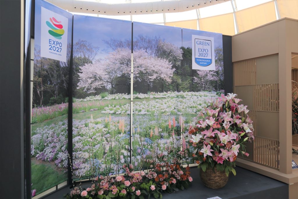 また、ジャパンデーの開催にあわせて、1月9日から21日まで、横浜市と協力して屋内展示館のメイン展示に出展しました。「『YOKOHAMA』から巻き起こす新たな波 (A new wave emerging from Yokohama)」をテーマとしたフラワーアレンジメントを展示し、GREEN×EXPO 2027と開催都市横浜のPRを行いました。